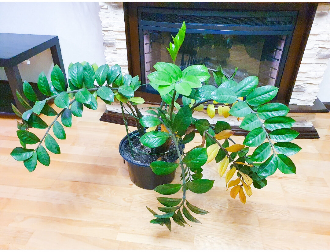 Желтые листья могут возникнуть, если замиокулькас давно не пересаживался, и в земле закончились питательные вещества. В этом случае он естественным образом избавляется от «балласта». Но если зацветают новые листья, значит, режим ухода установлен правильно.