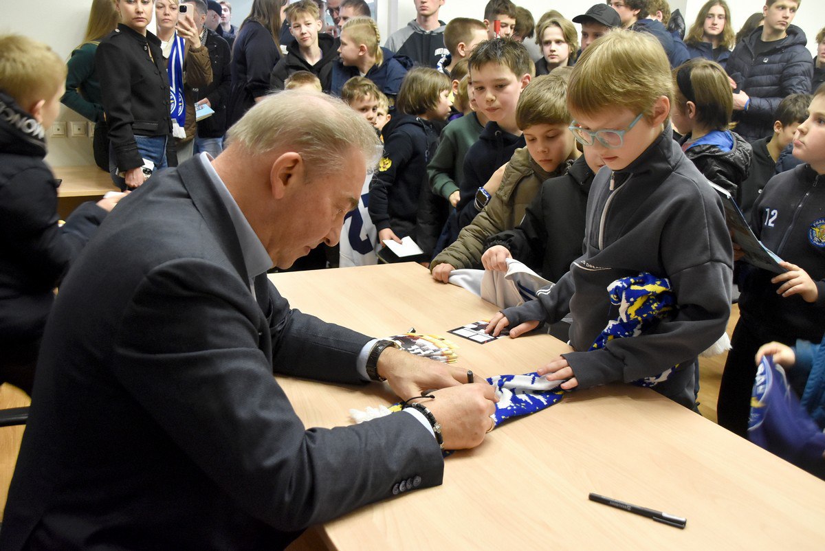 Болельщиков и игроков приветствовали губернатор Рязанской области Павел Малков и Владислав Третьяк, президент Федерации хоккея России.