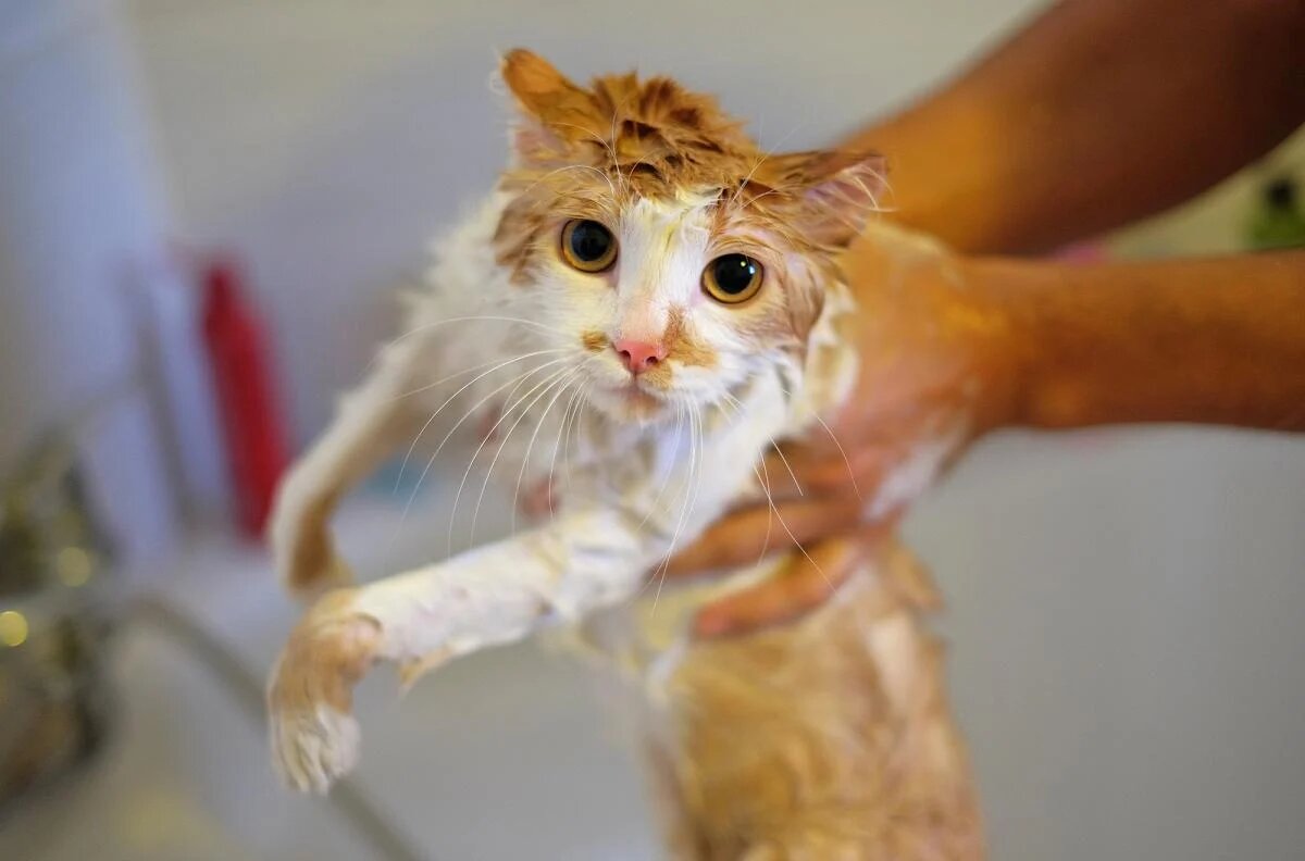 Как безопасно купать кота