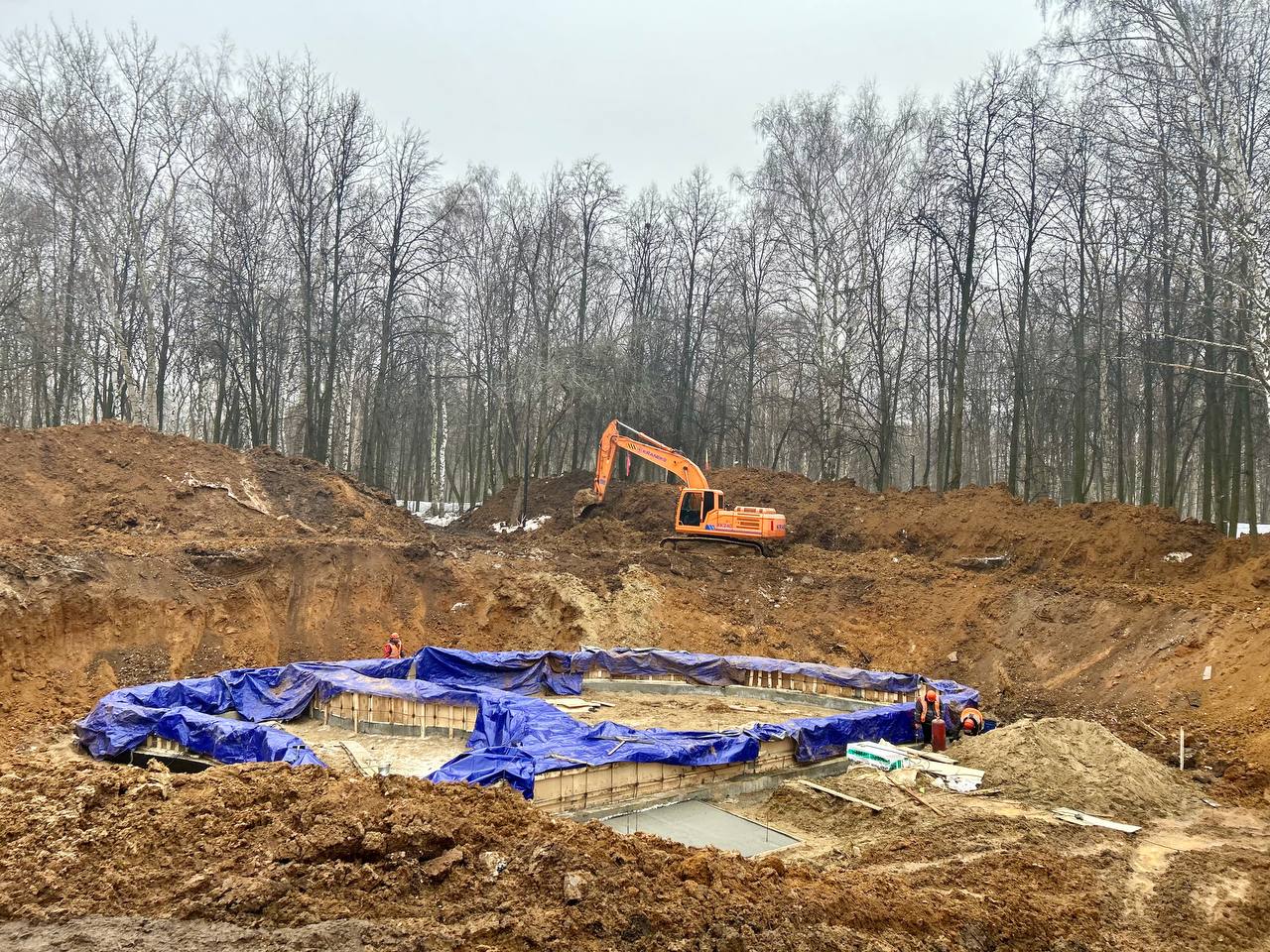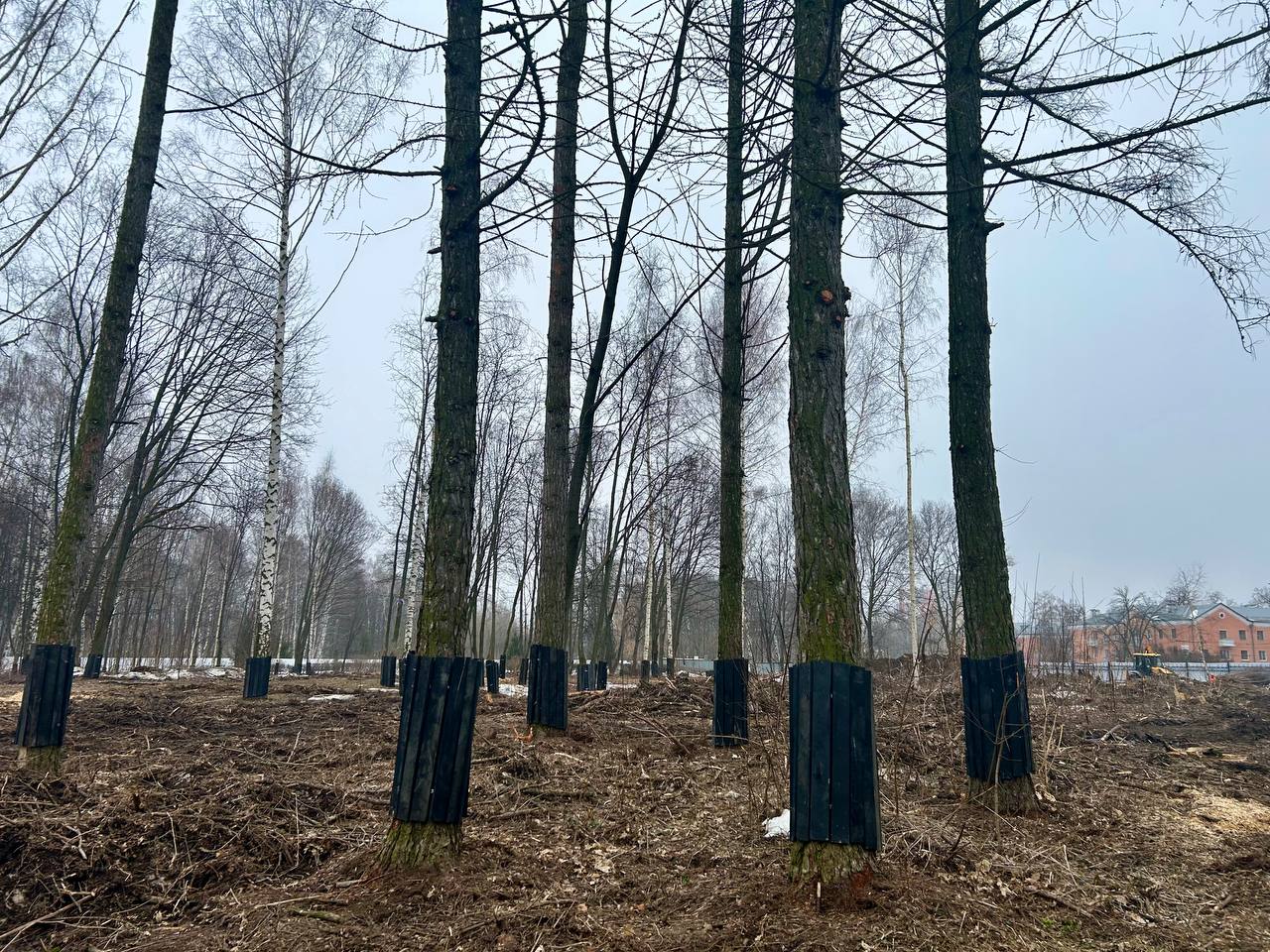 Работы по благоустройству ЦПКиО идут одновременно по двум направлениям: устройству большой детской игровой площадки и санитарной прочистке территории. На текущий момент вырыт котлован под площадку, проведены все необходимые коммуникации и водоотведение. В рамках санитарной прочистки удаляют сорную поросль, американский клён, сухие ясени и больные деревья. Все мероприятия проведены на основании предварительного обследования и с официальным разрешением на спил. Подрядчик также занимается оздоровлением зелёных насаждений, а чтобы не повредить деревья в ходе работ, устанавливает специальные защитные ограждения — «короба».