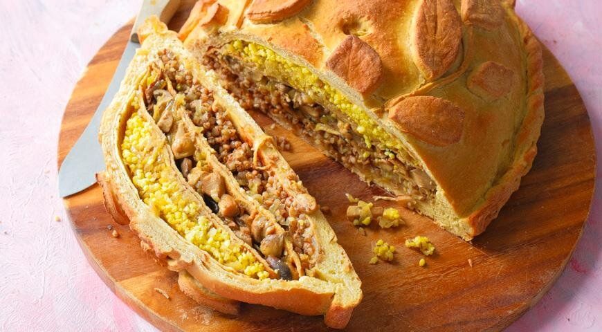 Постная кулебяка отличается многообразием начинок, и каждый может выбрать по своему вкусу: