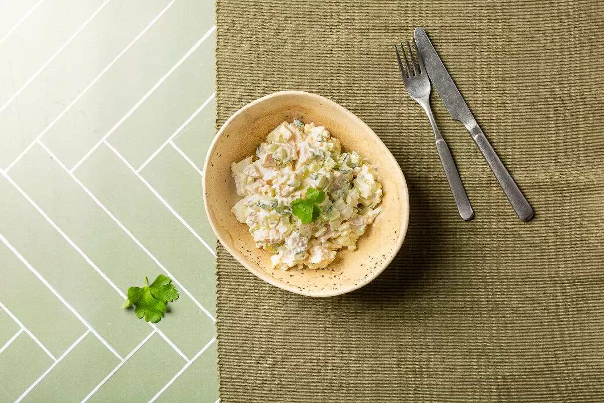 1. Начать стоит с варки яиц до состояния "вкрутую". Остудите их и нарежьте небольшими кубиками.